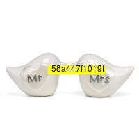 White porcelain birds with pearlized heart designs featuring Mr. and Mrs. in...$17